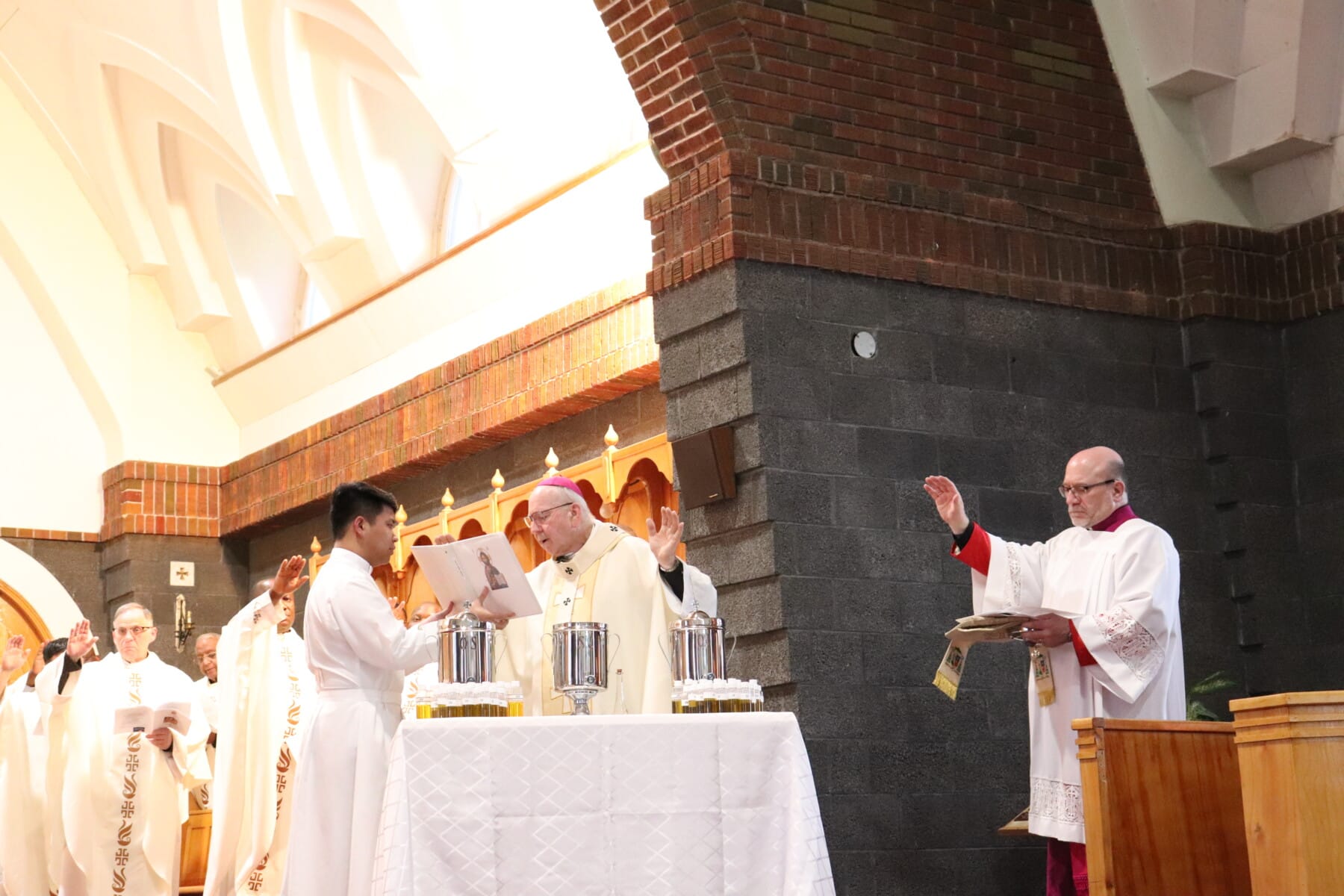 For all the baptized, the baptismal anointing with Sacred Chrism spiritually empowers us with three gifts – as priest, prophet and king. We take on the identity of Christ. This identity is not a fancy title. It characterizes who we are and what we are called to do in the world – to bear witness to what we represent. Just like the name “Christian,” to be baptized is to be a follower of the teachings of Christ. For the ordained priests, the pouring of the Chrism on their palms consecrates them for service – and they take on the identity, altar Christus. This identity is what they are called to be and called to do for God, his Church and the people.