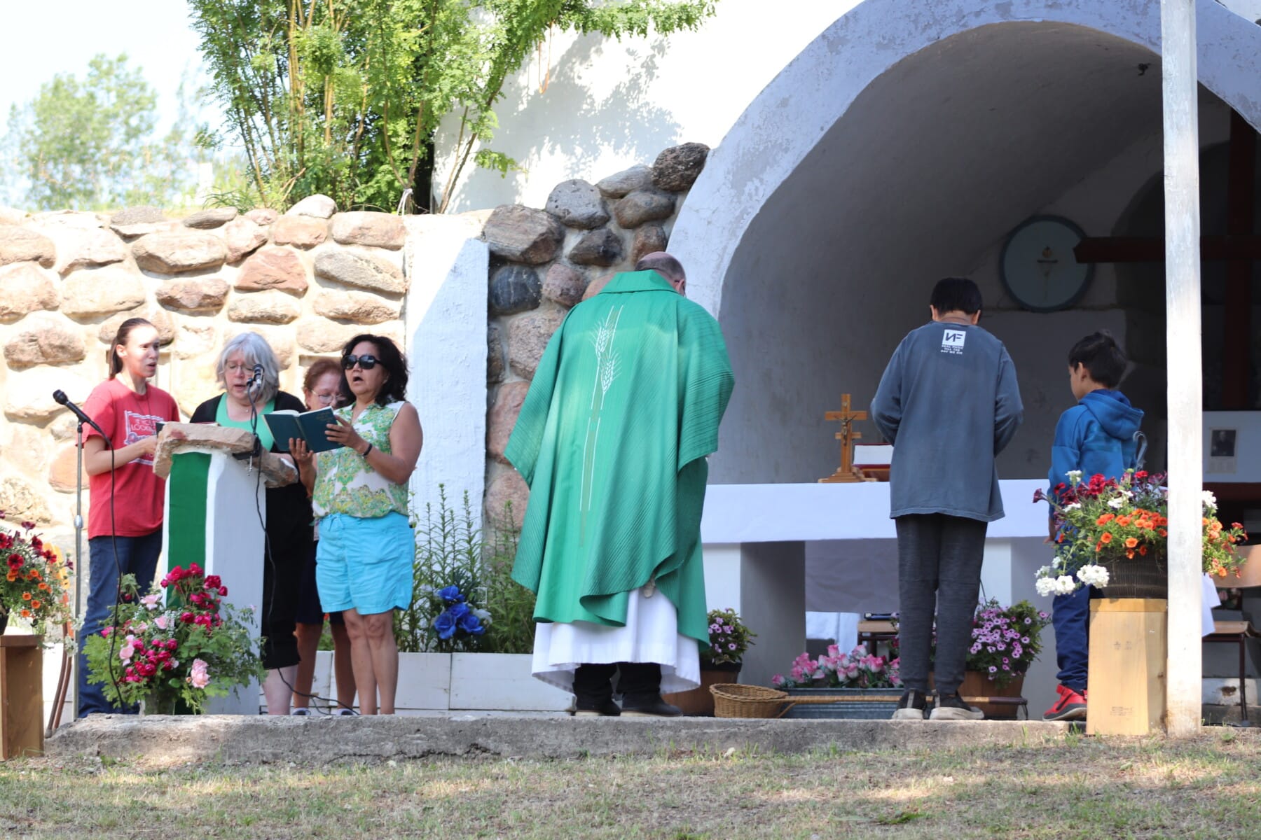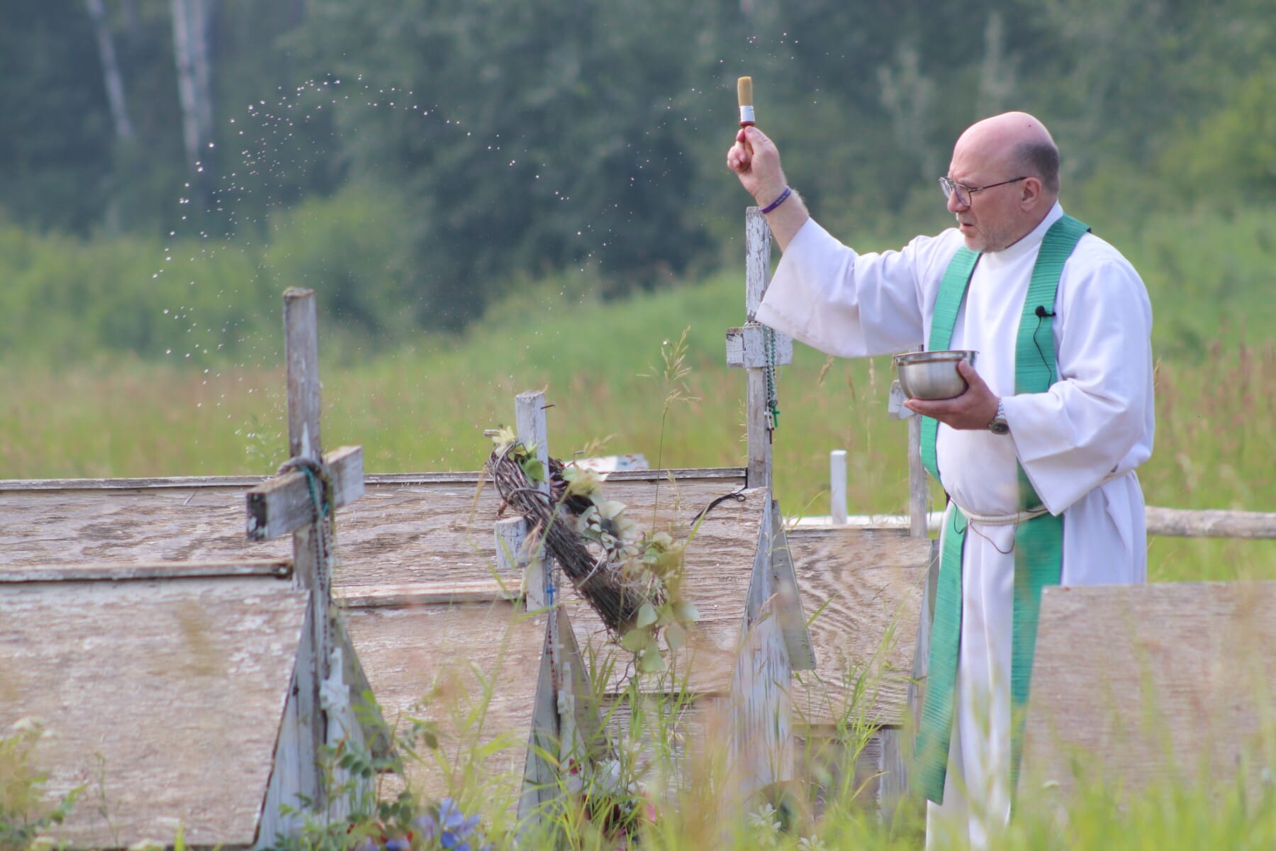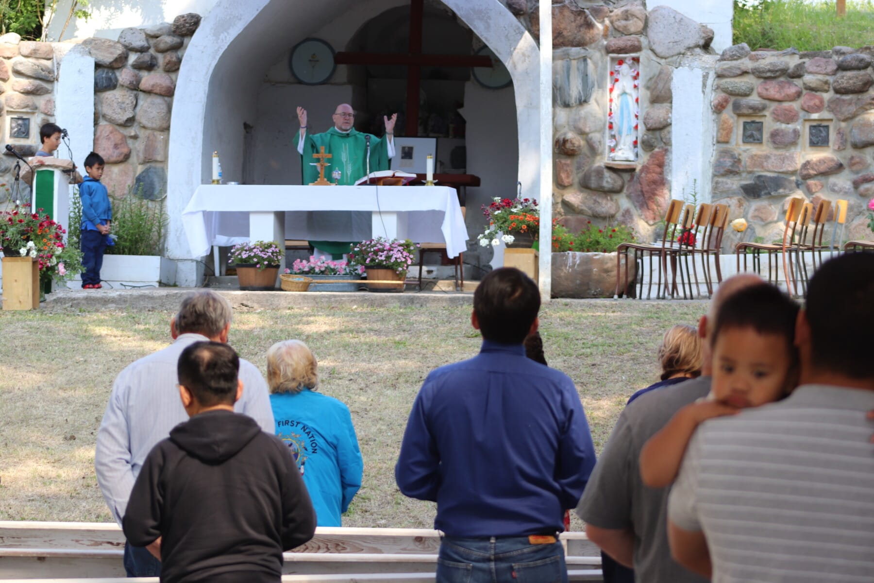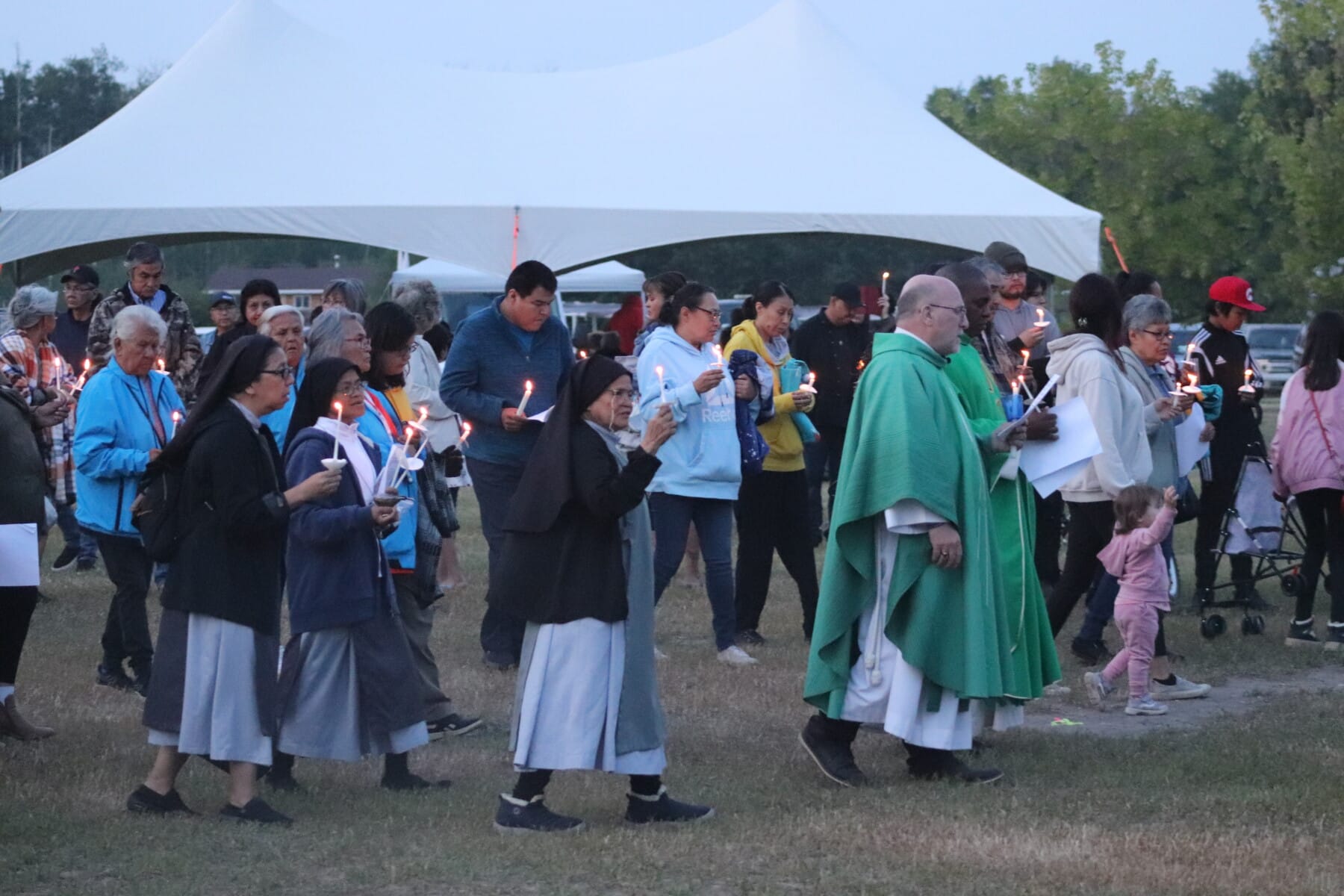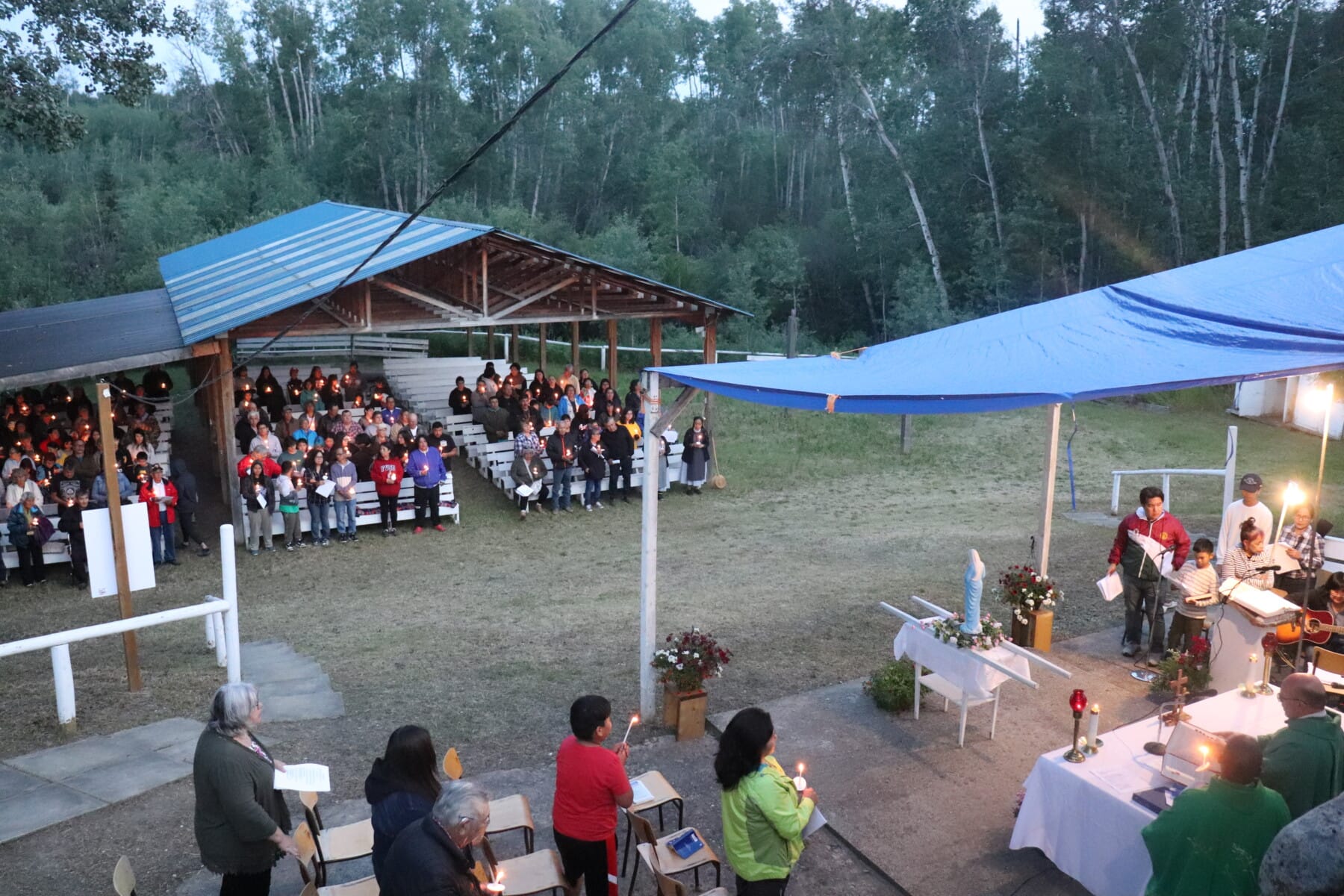 The annual Eleske Pilgrimage was held this past weekend (July 13th-14th) at the Child Lake Nation shrine and grotto. This historic pilgrimage, which has happened every summer since 1945, included blessings of the cemetery and grotto grounds, a healing service, a Way of the Cross, an evening procession and vigil Mass, and more.