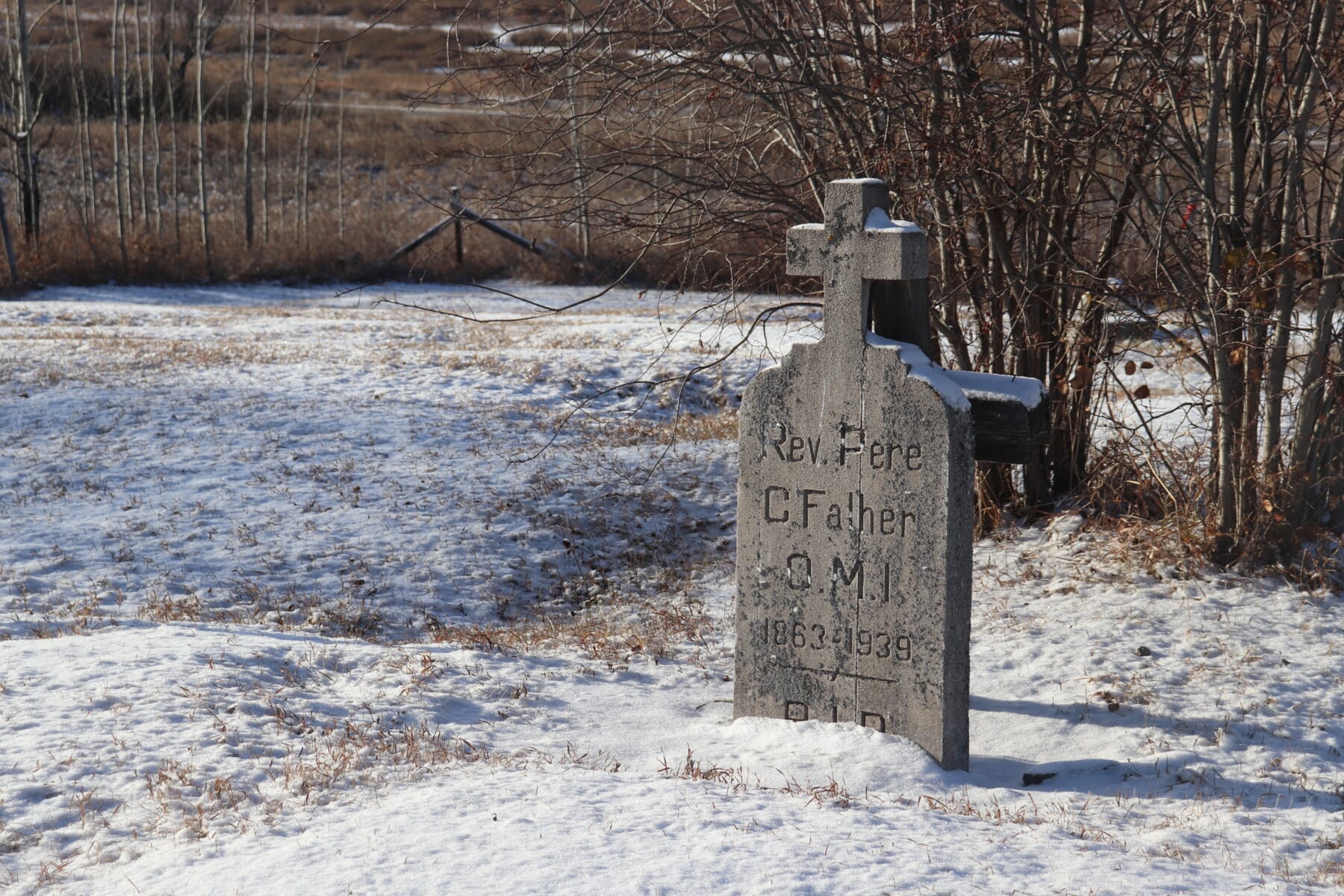 The public cemetery overlooking Buffalo Bay, on the western edge of Lesser Slave Lake, reflects that rich history. Near the cemetery still stands some buildings from the early mission days of Grouard. Regrettably, the historic St. Bernard Church that once stood as a sentinel and watchtower over the cemetery, was lost in a fire in 2023. A seperate cemetery nearby is the resting place of many bishops, priests, and religious brothers and sisters. Of note among them are Bishop Emile Grouard, OMI, Bishop Isidore Clut, OMI, Bishop Celestin Joussard, OMI, Fr. Constant Falher, OMI and others.