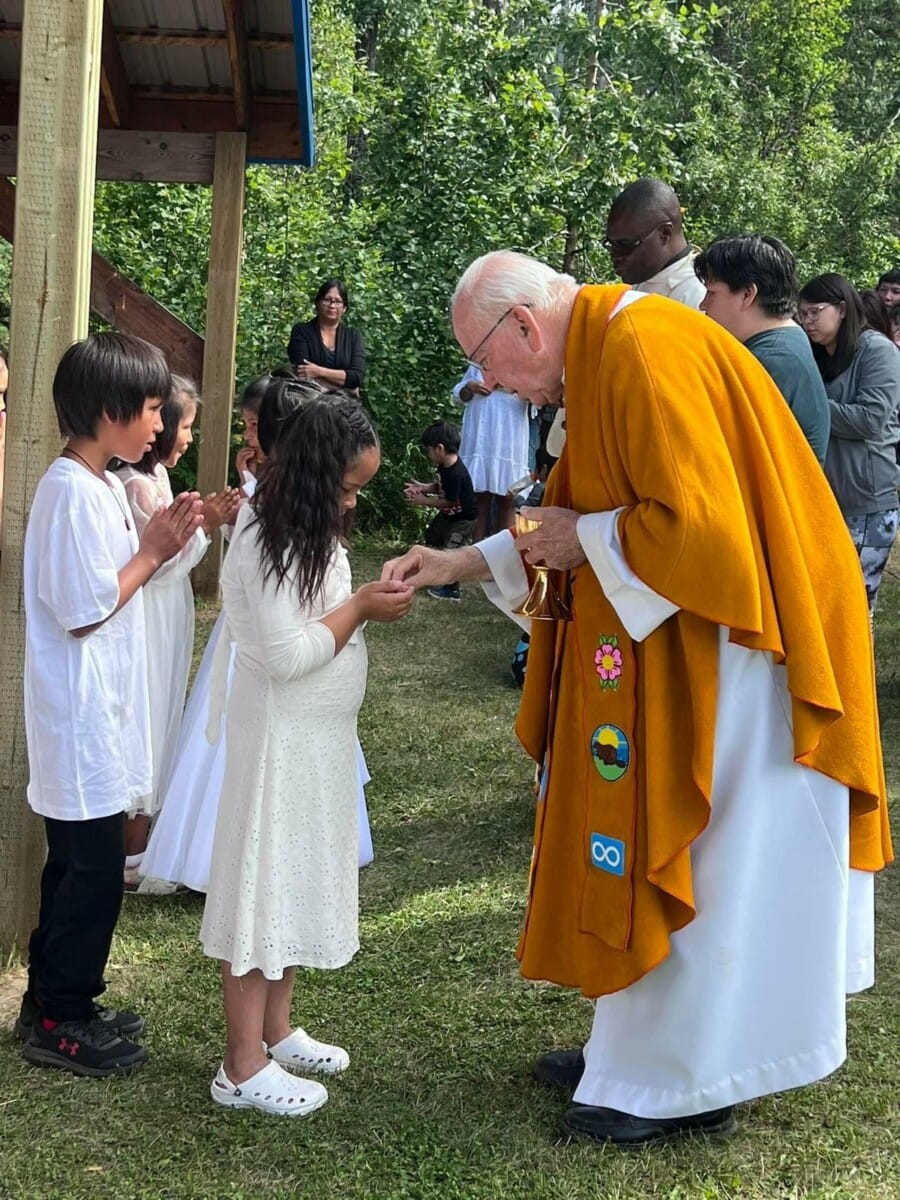 “Before becoming bishop I had very little contact with Indigenous communities as such, so this was a new world to me,” he said. “At the pilgrimage in Little Red River, during certain prayers at Mass I’d shut up and they would sing or speak the prayers in Cree – like the Lamb of God and the Our Father. And I found myself drawn into that. It is awesome. I am full of awe to be there and listen to this.