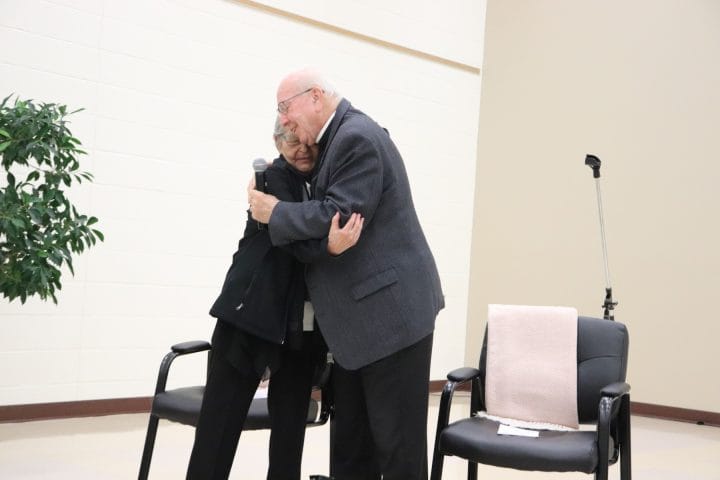 Angie Crerar and Archbishop Pettipas reflect on the meaning of reconciliation at church event