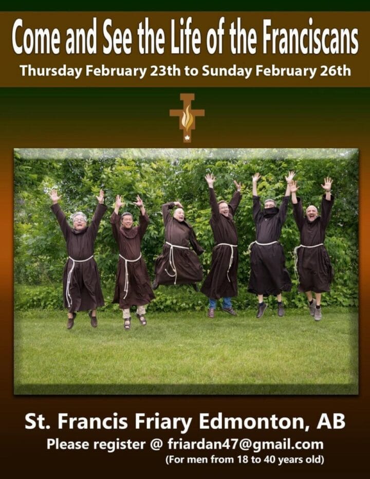 Check out this Come and See for the Franciscans of Canada, taking place at the St. Francis Friary in Edmonton from Feb. 23rd-26th.