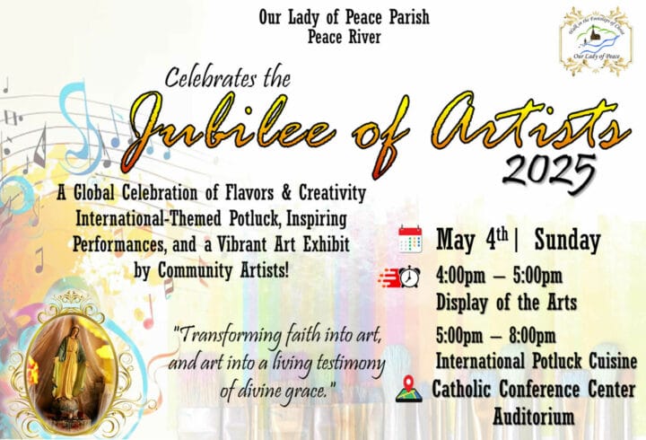 A special Jubilee celebration honouring faith and the arts, including a potluck, inspiring performances, and an art exhibit with local artists.